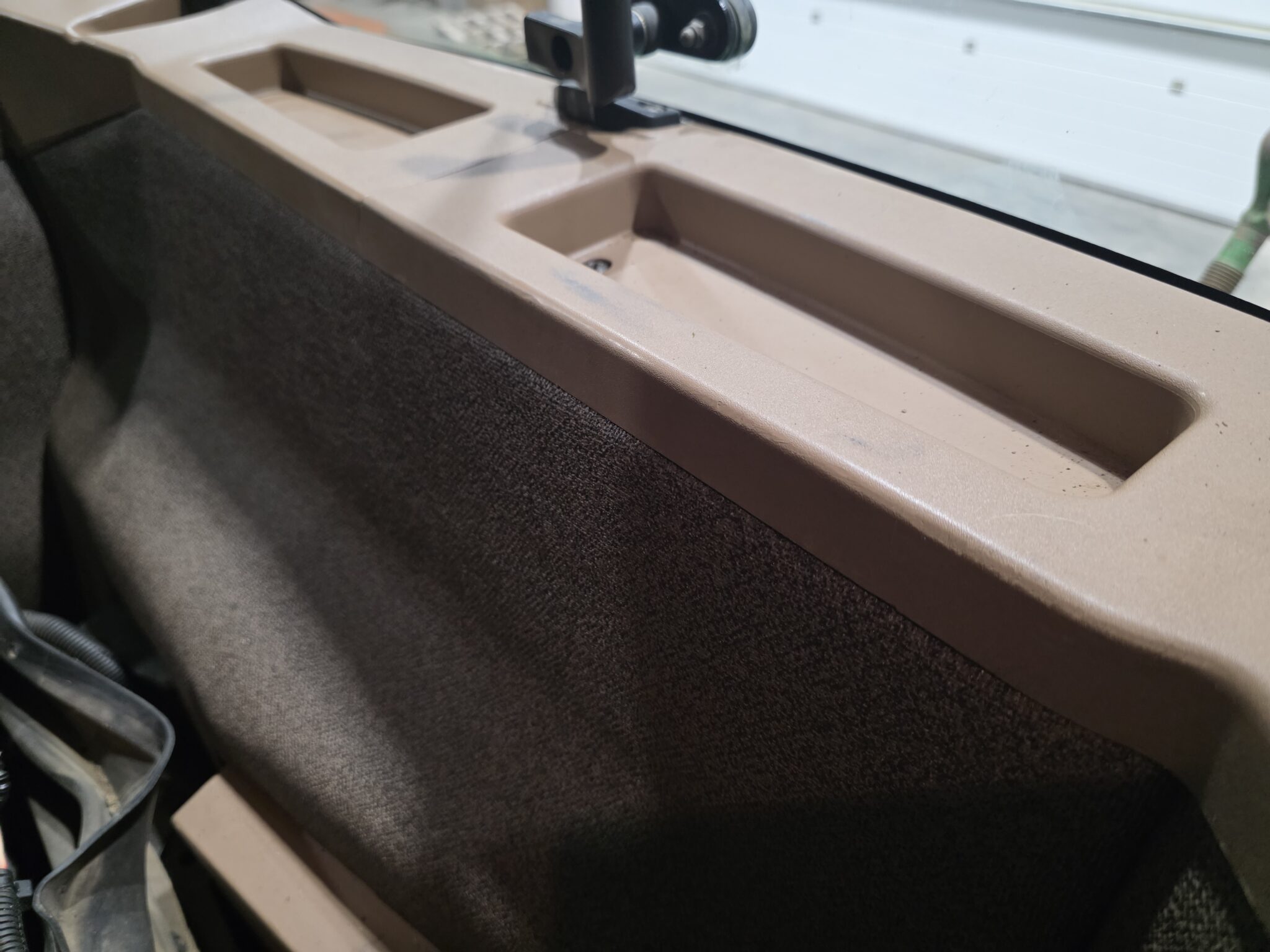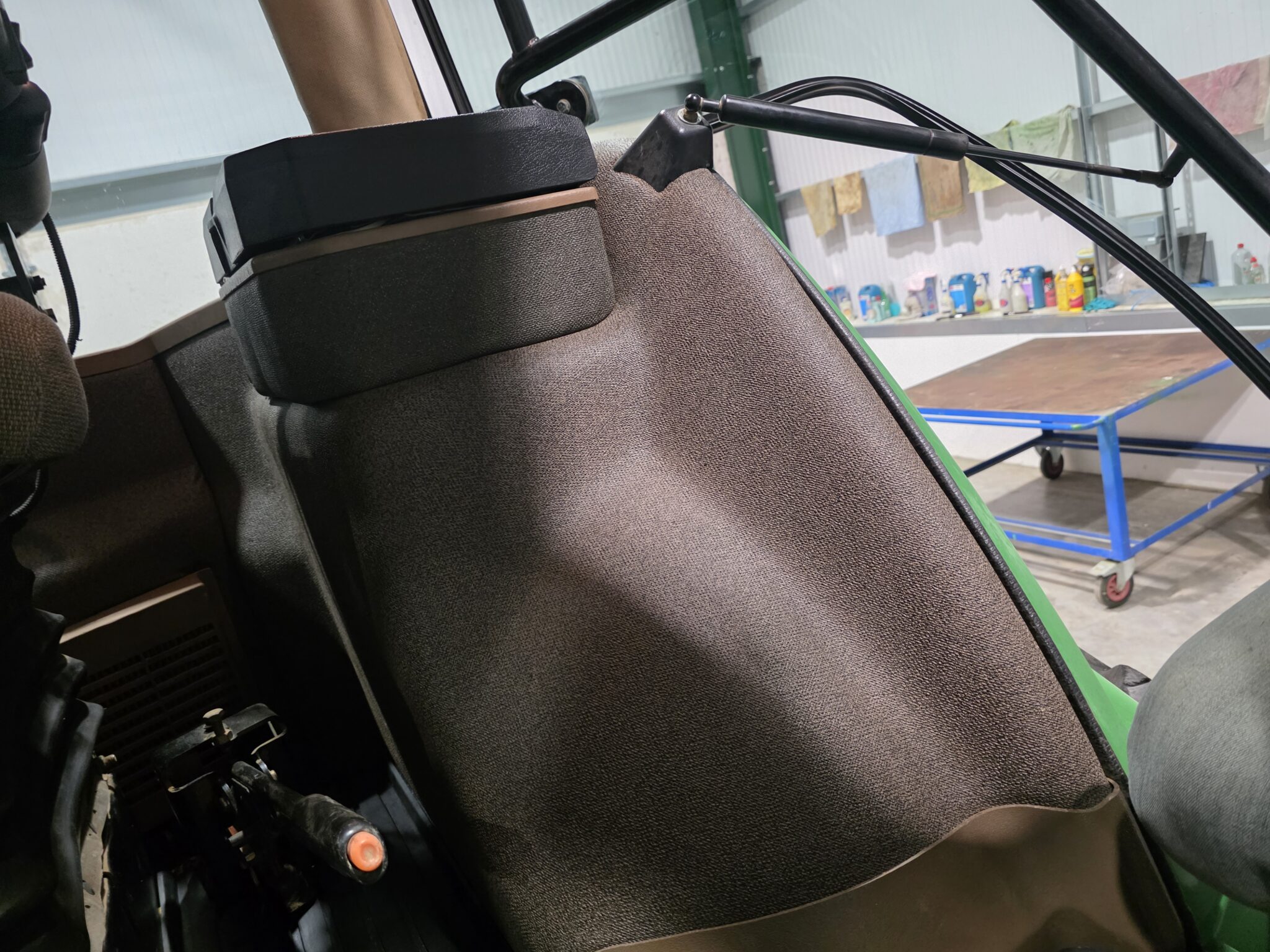 Die Kabine wurde entkernt und neu verkleidet (Seitenwände, hinter dem Sitz und Dach)